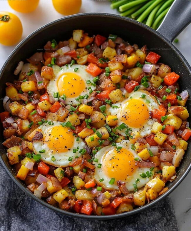 Breakfast skillet brings together sizzling bacon, crispy potatoes, and farm-fresh eggs in one delightful pan. Hearty and satisfying, this simple morning meal delivers comfort straight from your kitchen to the table.