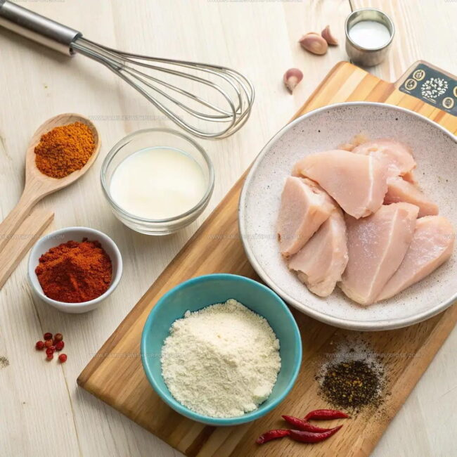 Buttermilk helps tenderize the chicken and adds tangy flavor. Its acidic nature breaks down proteins, making your chicken super soft and juicy before frying.