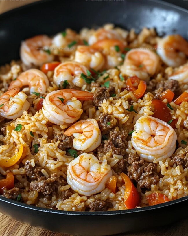 Dirty Rice from Louisiana meets zesty shrimp sausage in a spicy skillet dance that brings bold Southern flavors straight to your dinner table. Hearty rice, tender shrimp, and smoky sausage blend into a comfort-packed meal that delivers serious regional charm.