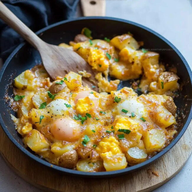 Potato egg scramble offers comfort food magic that satisfies morning hunger and weekend brunch cravings.