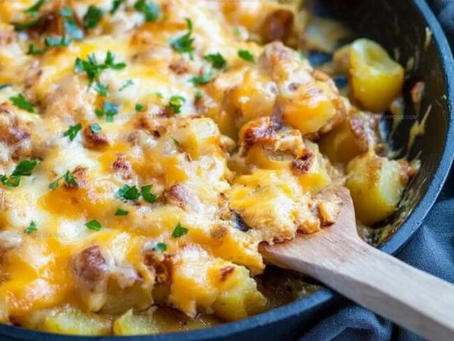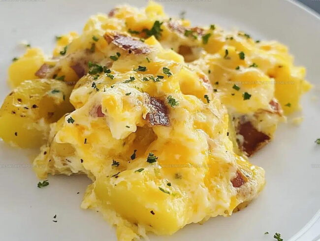 Cheesy Breakfast Potato Egg Scramble Recipe