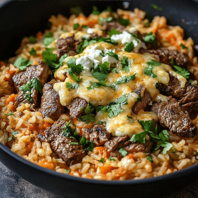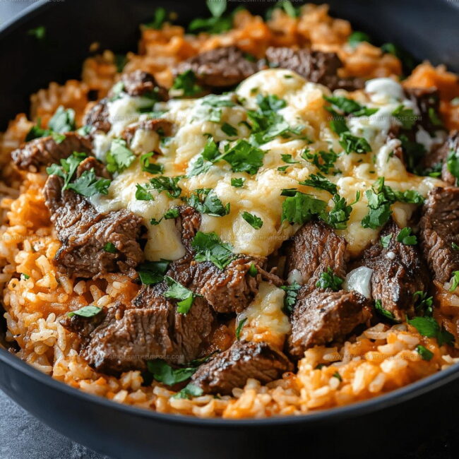 Cheesy Steak Queso Rice Recipe