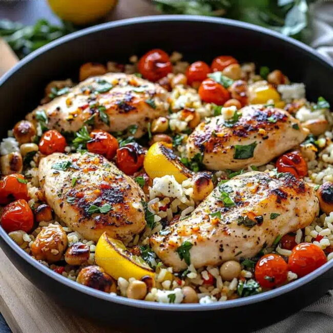 Chicken Rice with Feta and Tomatoes brings Mediterranean flavors straight to your dinner table with minimal effort and maximum taste. Sizzling chicken, fluffy rice, tangy feta, and juicy tomatoes combine in one skillet for a delicious meal that feels like a quick trip to Greece.
