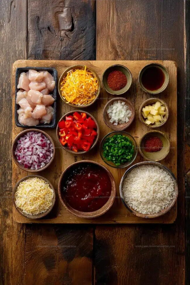 Protein Base:Aromatic Vegetables:Cooking Liquids and Flavor Enhancers:Cheese and Finishing Touches:Skillet Setup For Chipotle BBQ Chicken And Rice