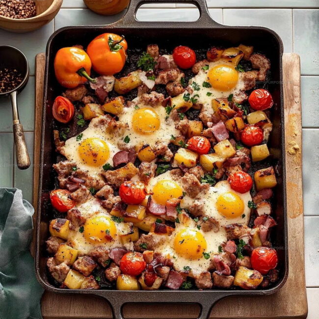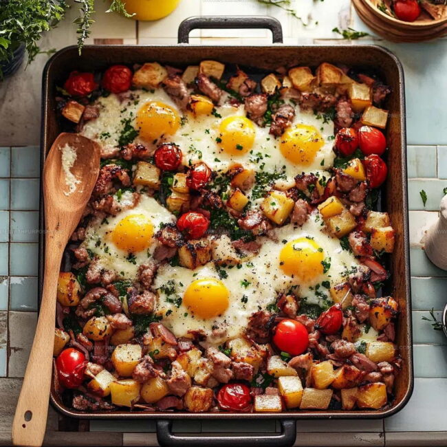 Bacon Egg and Potato Hash brings comfort straight to your breakfast table with crispy potatoes, sizzling bacon, and perfectly runny eggs. Savor this hearty skillet meal that combines classic flavors in one satisfying pan.