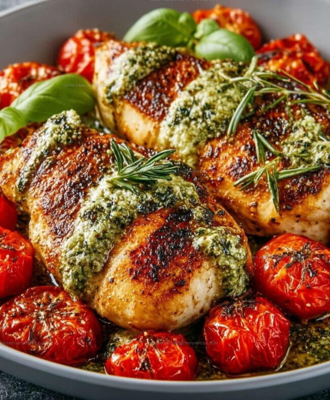 Pesto Chicken with Tomatoes delivers a quick weeknight dinner that brings restaurant-style flavor straight to your kitchen table. Juicy chicken breasts nestled in a rich, herbal sauce and sweet roasted tomatoes make this simple meal a total crowd-pleaser.