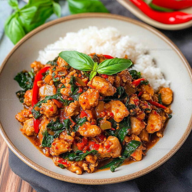 Spicy Thai Basil Chicken brings a delicious explosion of flavor straight from Thailand’s street food scene to your dinner table. Tender chicken sizzles with aromatic basil, fiery chilies, and savory sauce, making your home kitchen feel like a bustling Bangkok street vendor’s spot.