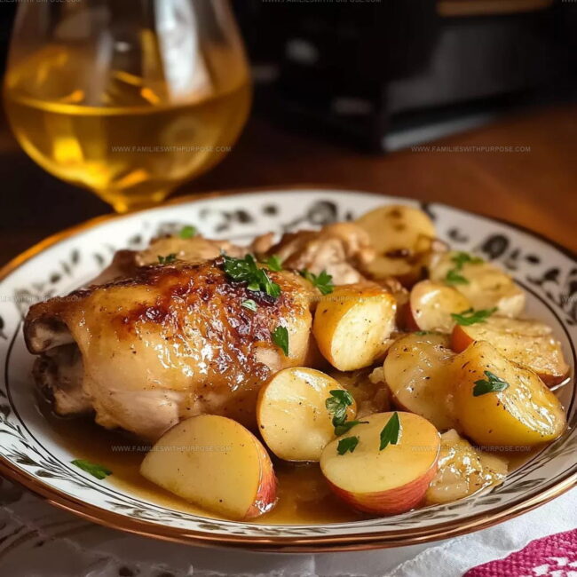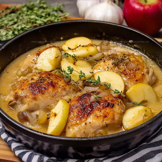 Simmering French Apple Cider Chicken brings Normandy’s rustic charm straight to your dinner table. Tender chicken breasts bathed in sweet-tangy apple cider create a simple yet elegant meal your family will savor.