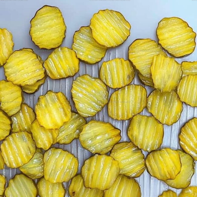 - Drain 16-ounce jar of dill pickle chips completely. Pat pickles dry with paper towels, ensuring no moisture remains. Spread pickles on clean kitchen towel.