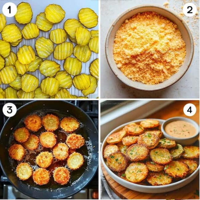 Carefully lower the breaded pickles into the hot oil. Fry them for 1-2 minutes on each side until they turn a beautiful golden brown. Don’t crowd the pan – work in small batches to keep them crispy.
