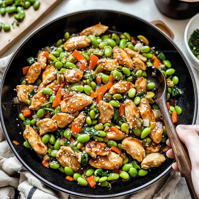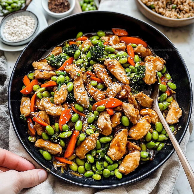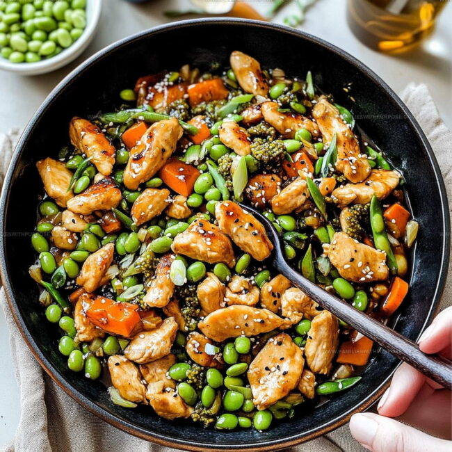 Whipping up Honey Garlic Edamame Chicken Stir Fry delivers a quick, flavor-packed dinner that brings restaurant-style excitement straight to your kitchen. Tender chicken, sweet garlic sauce, and bright green edamame create a delicious meal your family will devour in minutes.