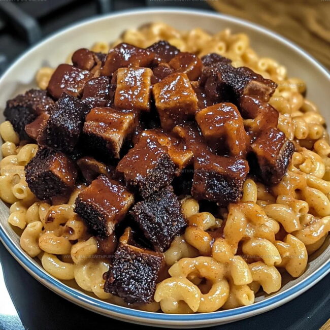 Saucy Kansas City BBQ Mac Burnt Ends deliver pure comfort straight from the heartland’s kitchen. Tender beef cubes and creamy pasta mingle with smoky barbecue sauce, creating a classic Missouri-style meal your dinner guests will devour.