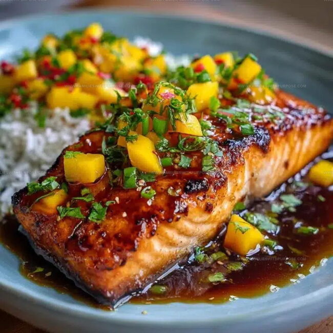 Mango Teriyaki Salmon brings Asian-inspired flavors right to your dinner plate, combining sweet tropical notes with rich, flaky fish for an easy weeknight meal that feels totally special. Tender salmon fillets glazed with homemade teriyaki sauce and fresh mango create a delicious dinner that comes together in less than 30 minutes.