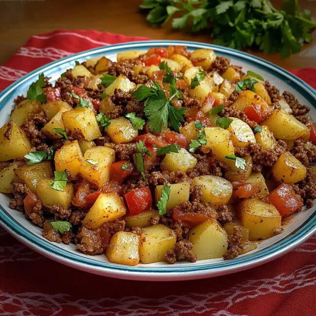 Seasoned beef mingles perfectly with tender potatoes, creating a one-pan wonder that feels like a warm embrace.