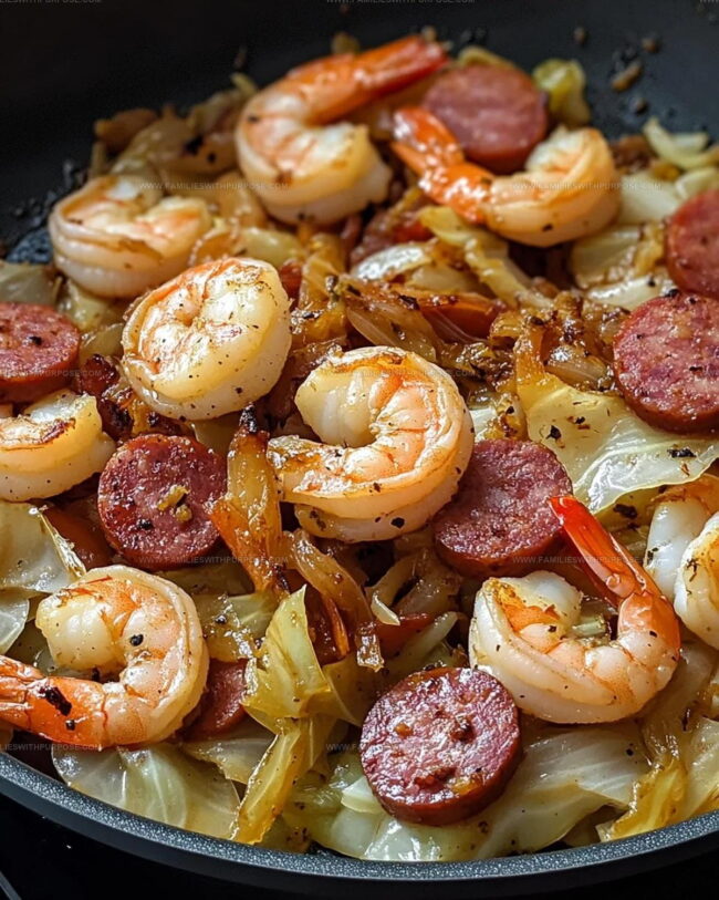 One-Skillet Fried Cabbage With Shrimp Sausage And Bacon Recipe