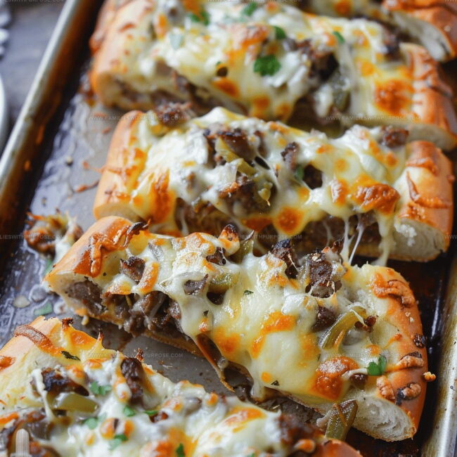 Philly cheesesteak cheesy bread turns your kitchen into a Philadelphia street corner, delivering mouthwatering layers of tender beef, melted provolone, and golden toasted bread that make your taste buds dance with pure sandwich satisfaction.
