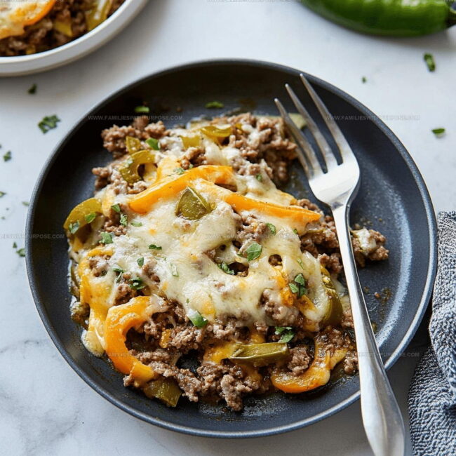 Sizzling Philly Cheesesteak Skillet delivers comfort right to your dinner table with all the classic flavors packed into one easy pan. Melted provolone, caramelized onions, and seasoned ground beef create a quick weeknight meal that brings Philadelphia street food magic directly to your kitchen.