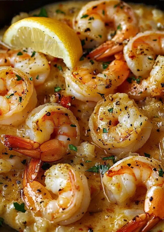 Return the cooked shrimp to the skillet. Stir them around to coat in the sauce. Squeeze in the juice of one whole lemon and sprinkle 1/4 cup fresh chopped parsley. Toss everything together until warm. Serve immediately over pasta or with crusty bread, and add a few lemon wedges on the side.