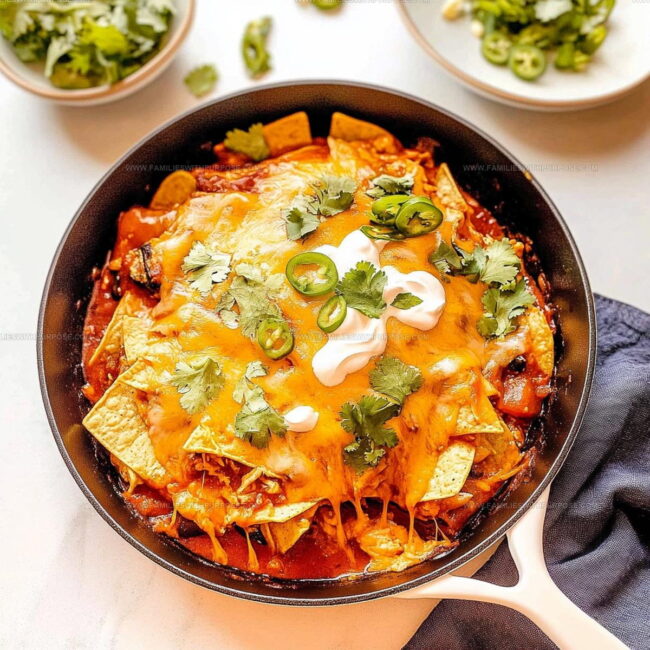 If you enjoy fresh herbs, chop some cilantro and scatter it on top just before serving. The skillet is ready to be enjoyed straight from the pan.