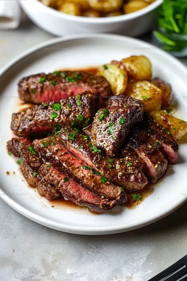 Cook the steak for another 3-4 minutes, depending on your preferred doneness. Remove the steaks from the pan and let them rest for 5 minutes. This allows the juices to settle back into the meat. Sprinkle 1 tablespoon chopped fresh parsley on top for a bright finish.