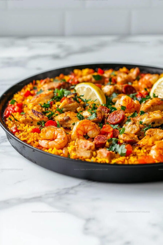 - Vegetarian adaptation works well by replacing chicken and chorizo with plant-based protein like tempeh or tofu, maintaining similar spice profile.