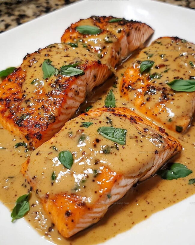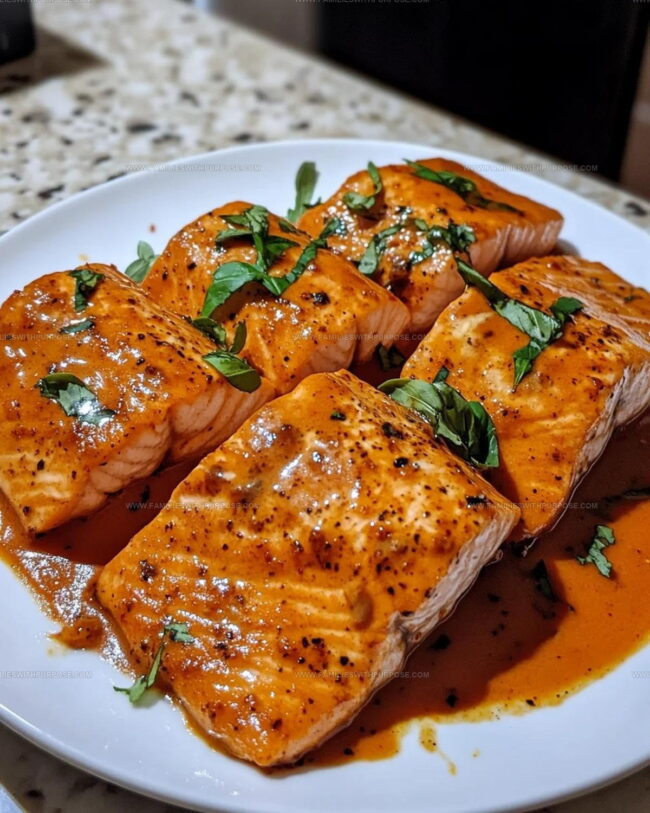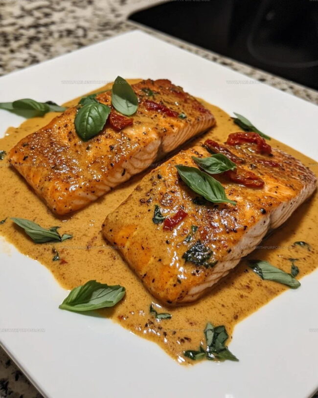 Slide those seared salmon fillets back into the skillet. Spoon that dreamy sauce all over them. Let everything bubble together for 3-4 minutes so the salmon soaks up all those incredible flavors. Chop 1 tablespoon fresh basil and sprinkle it on top right before serving.
