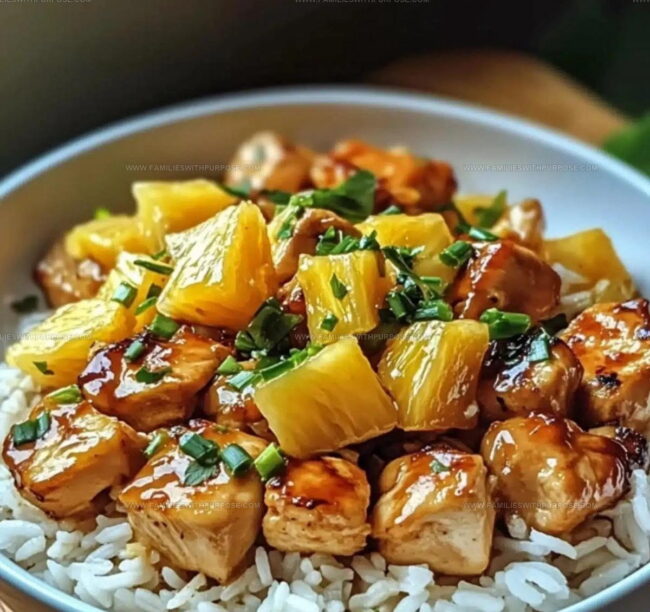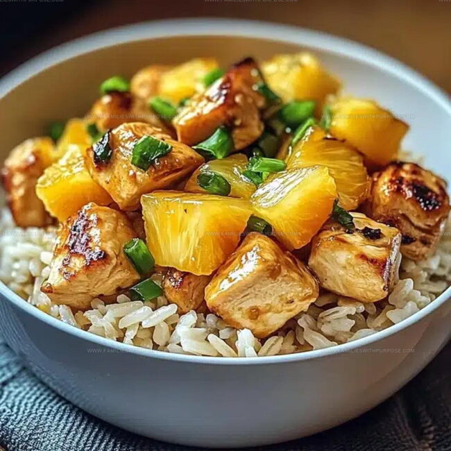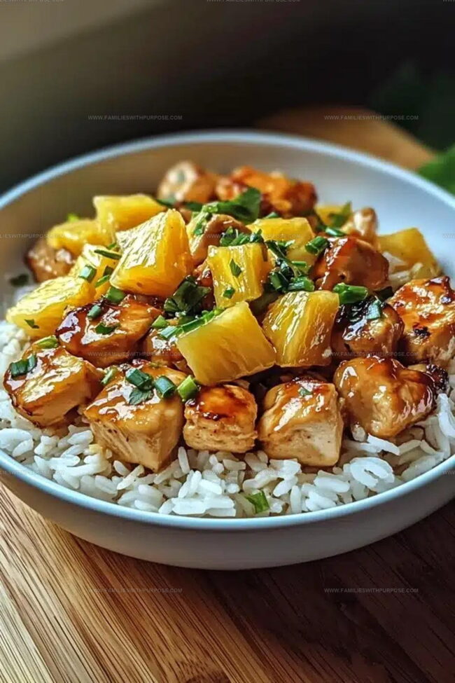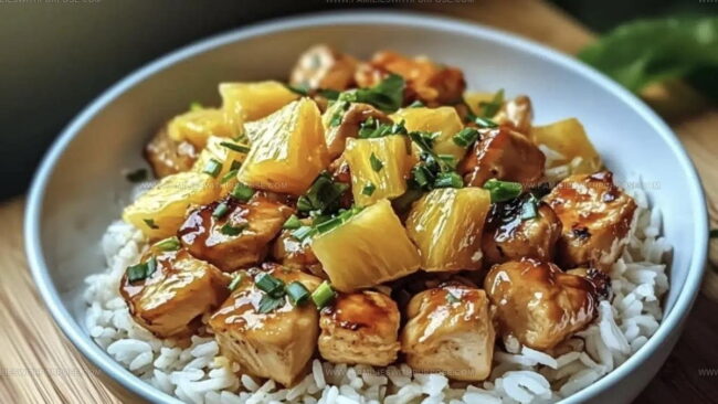 Sweet pineapple chicken and rice combines tropical fruit with savory protein for a dinner that feels both comforting and a little special.