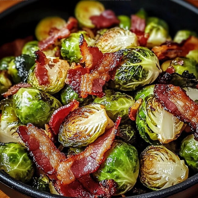 Transfer the Sweet Smoky Brussels Sprouts to a serving dish while they’re piping hot. The combination of crispy edges, smoky bacon, and sweet-tangy glaze makes this side dish absolutely irresistible.