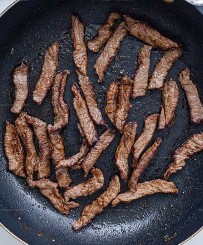 - Cut beef into thin, uniform pieces to ensure even and quick cooking.