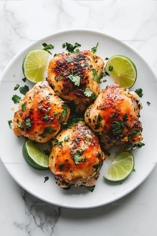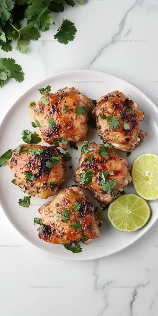 Sprinkle the remaining chopped cilantro over the cooked chicken. Squeeze fresh lime wedges on top for an extra burst of brightness. Serve immediately and enjoy your zesty meal!